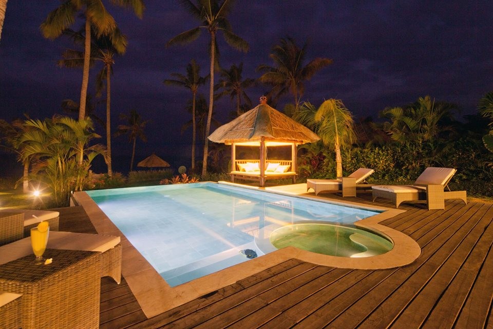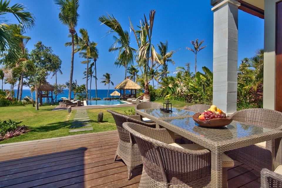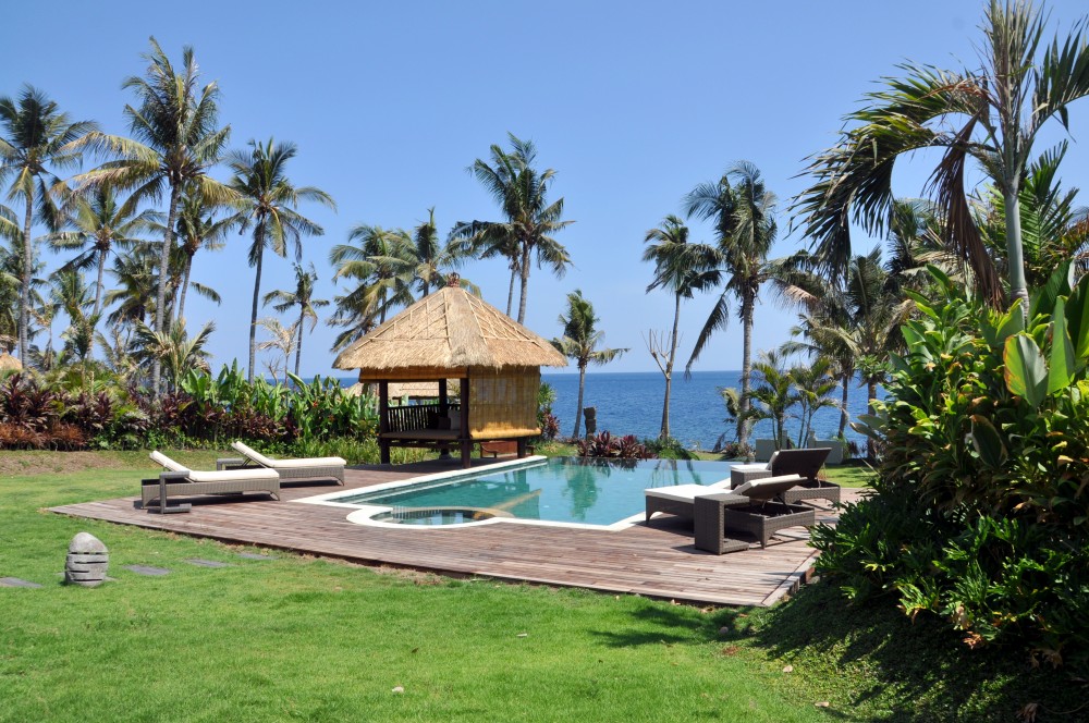 - soukromá zahrada 1200 m2 přímo na břehu balijského moře, korálové zahrady a potápěčský vrak přímo před vilou